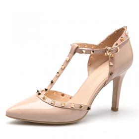 萊爾斯丹 2017春新款復古粗跟圓頭中跟高跟鞋女鞋通勤單鞋8M43701