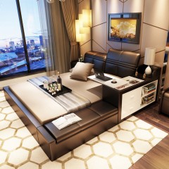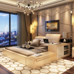 創意真皮床雙人床現代婚床1.8米1.5榻榻米床儲物床皮藝床軟床大床 床側儲物 升降靠背 雙ll價格 更低
