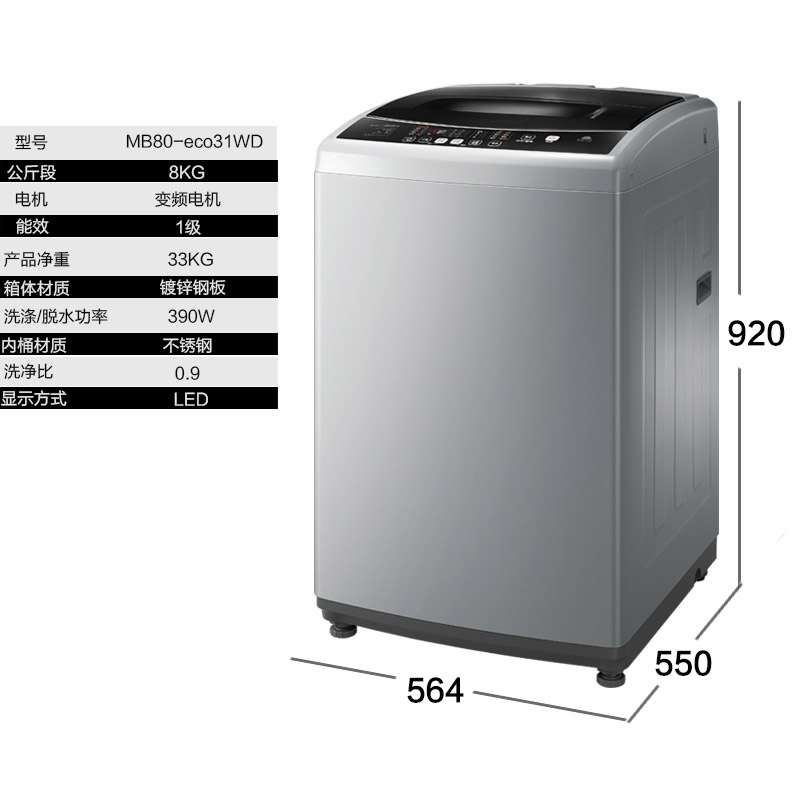 商品名稱:Midea/美的 MB80-eco31WD 8公斤變頻洗衣機全自動波輪智能大容量 省電靜音 0.9洗淨比 洗得更乾淨