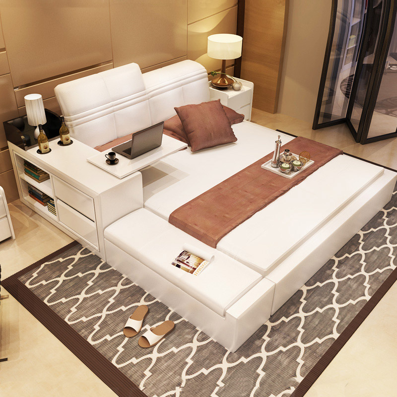 創意真皮床雙人床現代婚床1.8米1.5榻榻米床儲物床皮藝床軟床大床 床側儲物 升降靠背 雙ll價格 更低