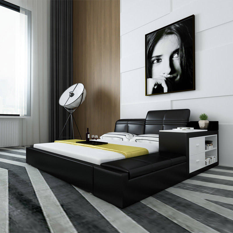 商品名稱:創意真皮床雙人床現代婚床1.8米1.5榻榻米床儲物床皮藝床軟床大床 床側儲物 升降靠背 雙ll價格 更低