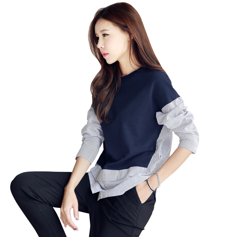 韓都衣捨2017韓版女裝夏裝新款時尚修身顯瘦圓領條紋T恤OGY7711娋 顯瘦版型 舒適面料 條紋元素