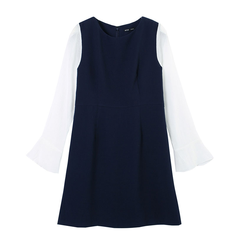 商品名稱:韓都衣捨2017春裝新款女裝春款拼接喇叭長袖連衣裙中長款時尚韓版 領券立減/單件包郵/七天無理由退換