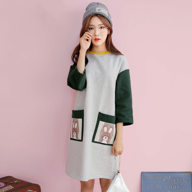 韓都衣捨2016新款秋冬款長袖連衣裙寬鬆學生冬季內搭打底裙子韓版 領券下單立減/單件包郵/先拍先發貨!