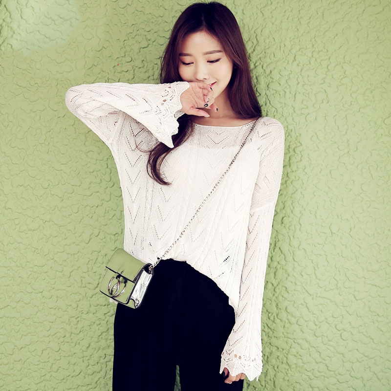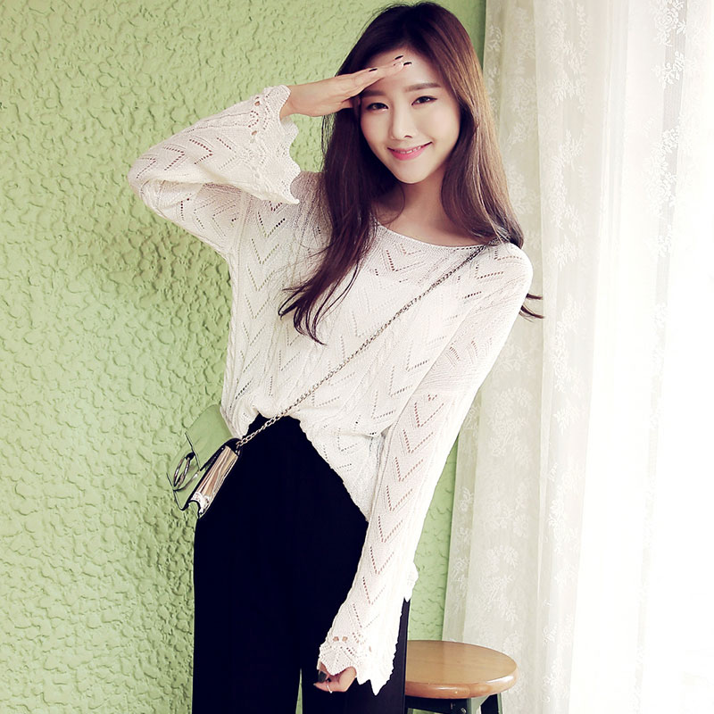 韓都衣捨秋冬喇叭長袖針織衫毛衣女套頭寬鬆純色百搭學生韓版打底 領券下單立減/單件包郵/先拍先發貨!
