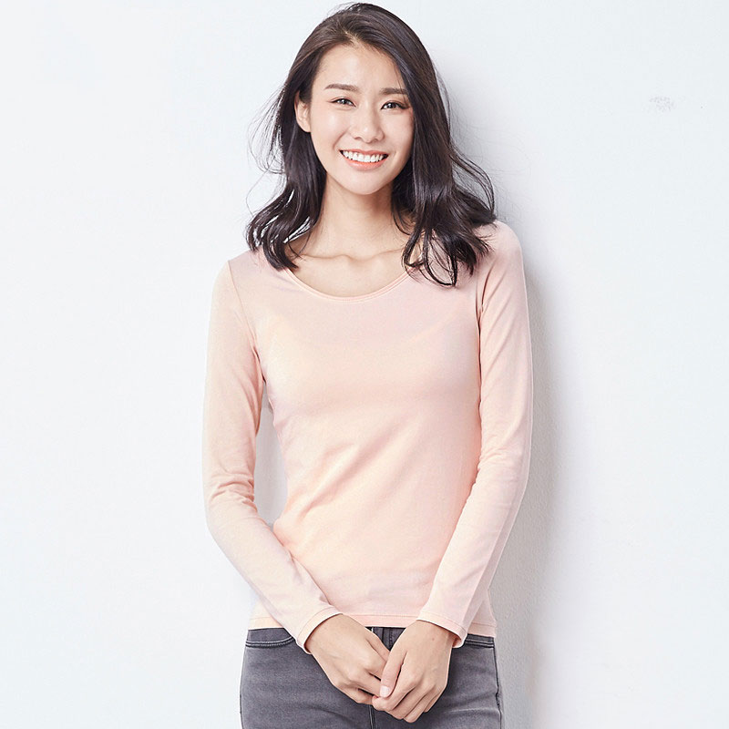 初棉純色圓領長袖T恤打底衫秋衣女上衣體恤女士修身打底衣春秋 挺拔有型 棉氨材質 柔軟舒適 耐洗耐磨