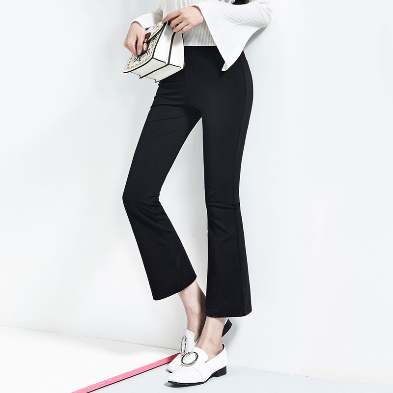 商品名稱:逸陽女褲春裝新款韓版休閒褲女九分褲黑色彈力微喇叭褲子顯瘦0032 濃郁復古風 修飾腿型 生而優雅